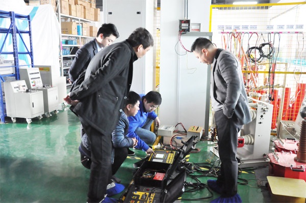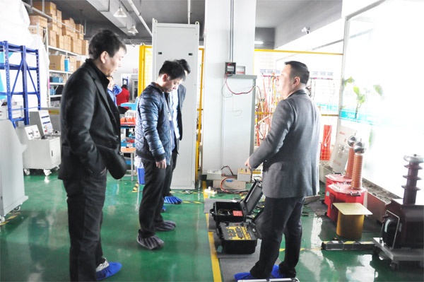 東北客戶此行主要考察SF6氣體回收裝置、無局部放電試驗裝置、高壓開關(guān)動特性測試儀等設(shè)備。 在考察過程中,工程師還為客戶進行了設(shè)備操作的現(xiàn)場演示,在演示過程中,客戶時不時會提出他們的疑問,我們的工程師也很耐心的為其解答。通過一天的考察后,東北客戶對國電西高的設(shè)備十分滿意,表示有合作意向。