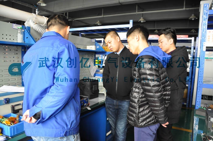 此次客戶來我司主要是學習CYZG-300直流高壓發生器、CYJS-6A系列 智能電力安全工器具試驗裝置以及了解我們公司其他設備。在本次培訓的過程中,我們的技術人員先對客戶進行理論知識培訓。