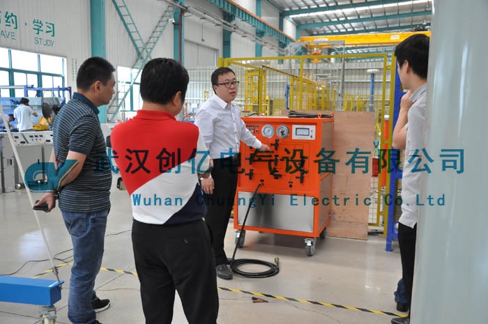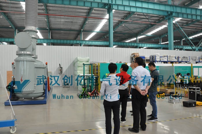 在參觀過(guò)程中,客戶對(duì)我司即將出口的新加坡的GIT(SF6移動(dòng)式工頻耐壓局放試驗(yàn)裝置)表現(xiàn)出濃厚的興趣。