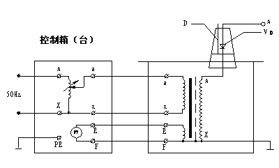 圖3:交流氣體式試驗(yàn)變壓器接線 2. 交流帶抽頭氣體式試驗(yàn)變壓器:見(jiàn)圖4